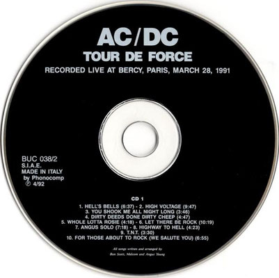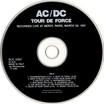 Tour De Force (Recorded Live At Bercy, Paris, March 28, 1991) - Italy 1992 (Buccaneer Records) (BUC 038/2)