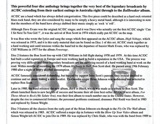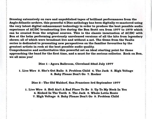 Das interessante ist, das auf der zweiten CD die letzten 5 Titel von der Promo "BBC TS" von 1978 zu hören sind. Sie sind in einer wesentlich besseren Qualität als auf der Doppel-LP "Electric Shock".