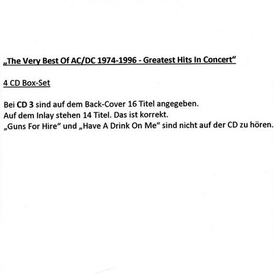 Statt wie angegeben "That's The Way I Wanna Rock N Roll" befindet sich "Whole Lotta Rosie" auf CD2 - Track 3.