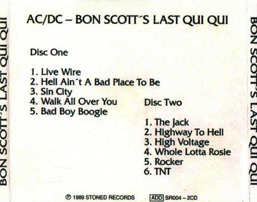 Bon Scott's Last Qui Qui - Germany (Made in Korea) 1989 (Stoned Records) (SR004 - 2CD)