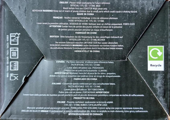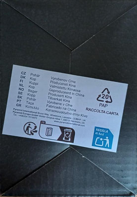 Verschiedene Tassen zum Teil mit der Verpackung in verschiedenen Ansichten.